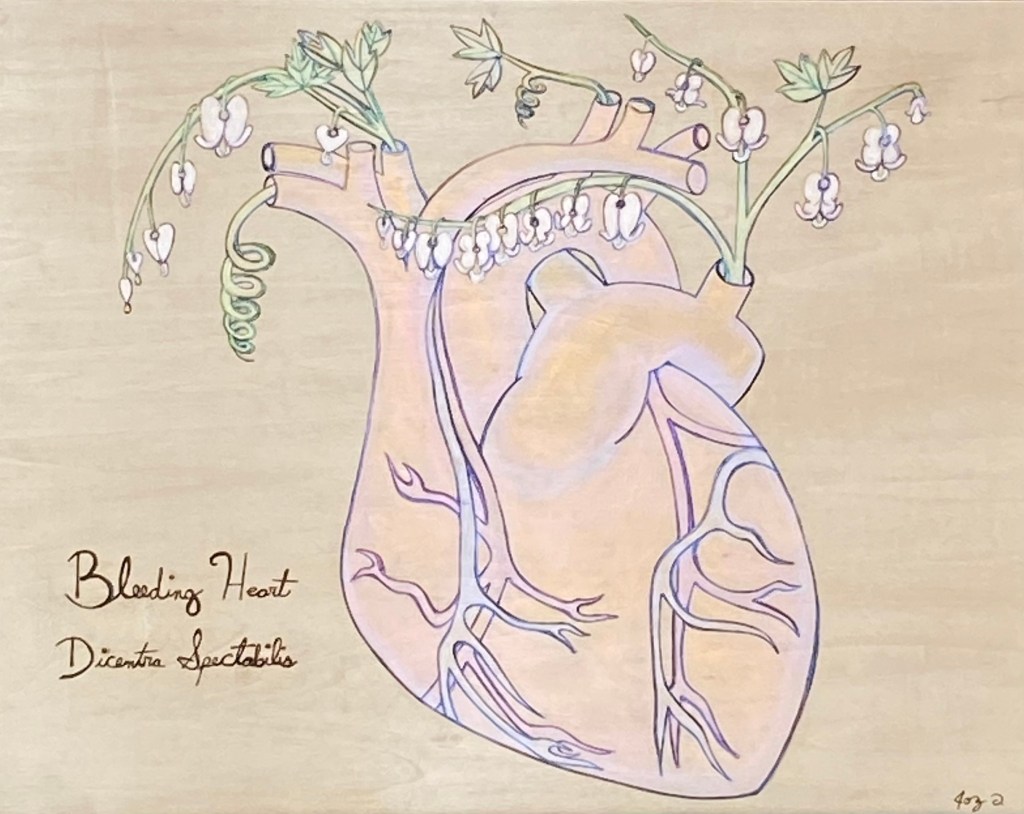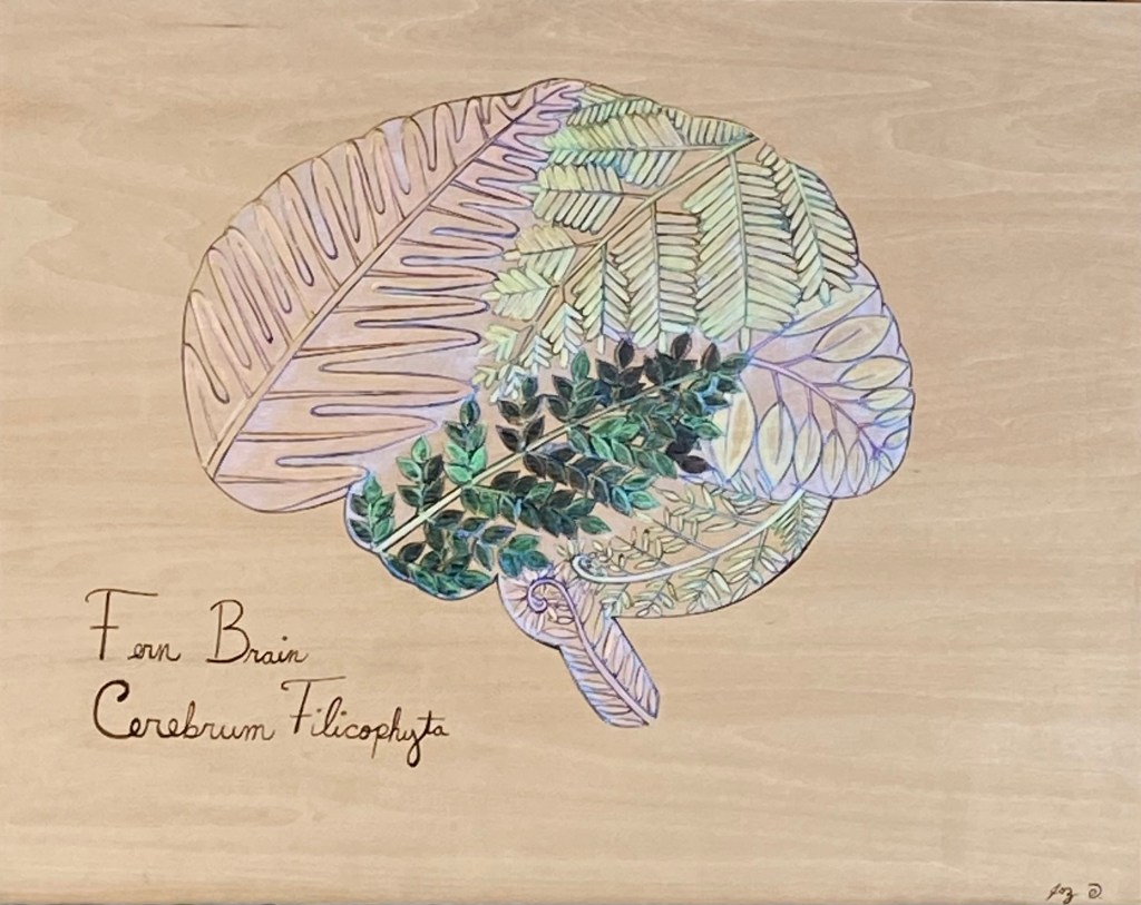These pieces are the first few of the “Botanical Organs” series. They are all 20″x16″pyrographs with layers of iridescent mineral on wood panel. To learn more, please follow me on instagram @jozdfineart