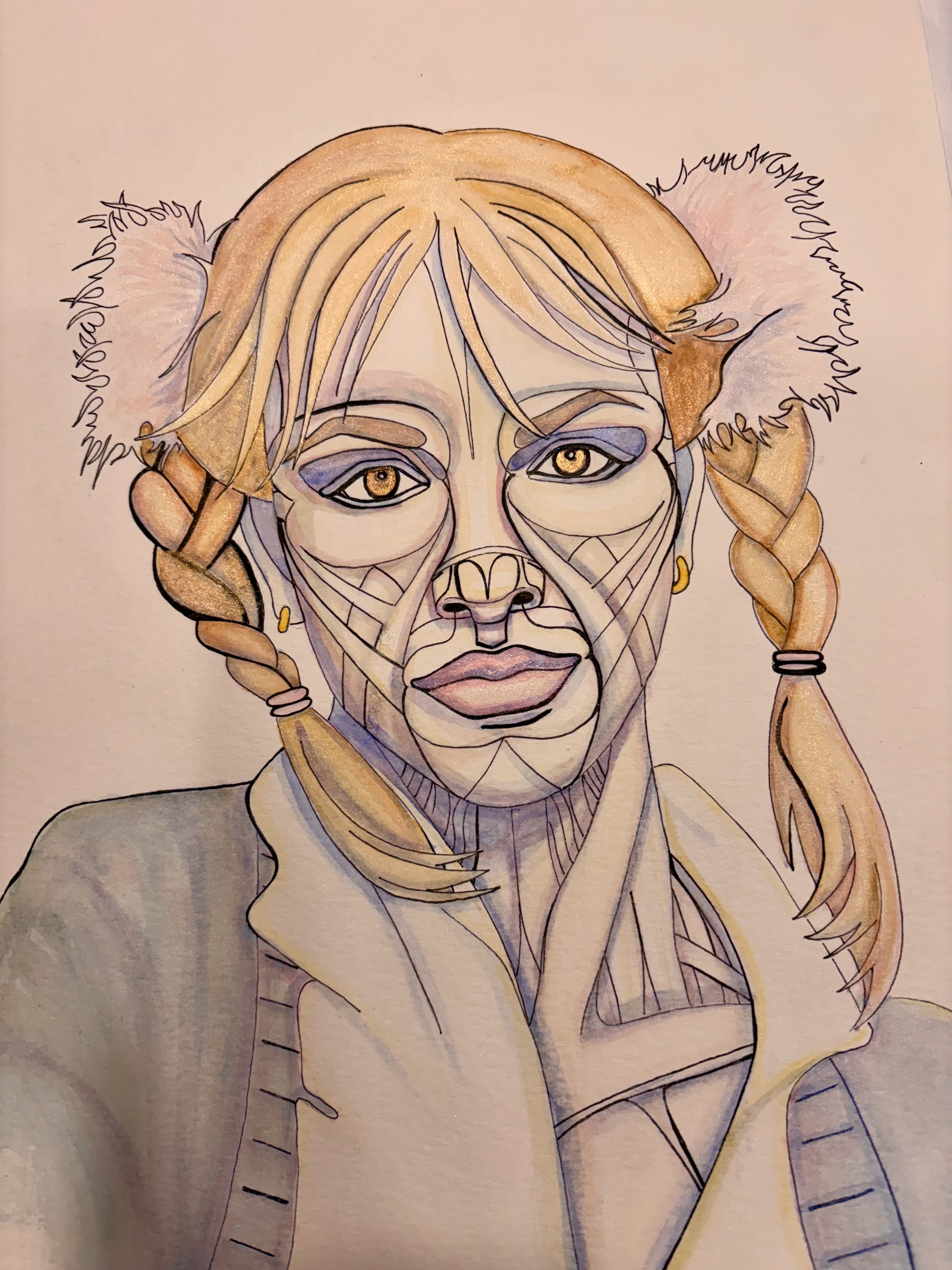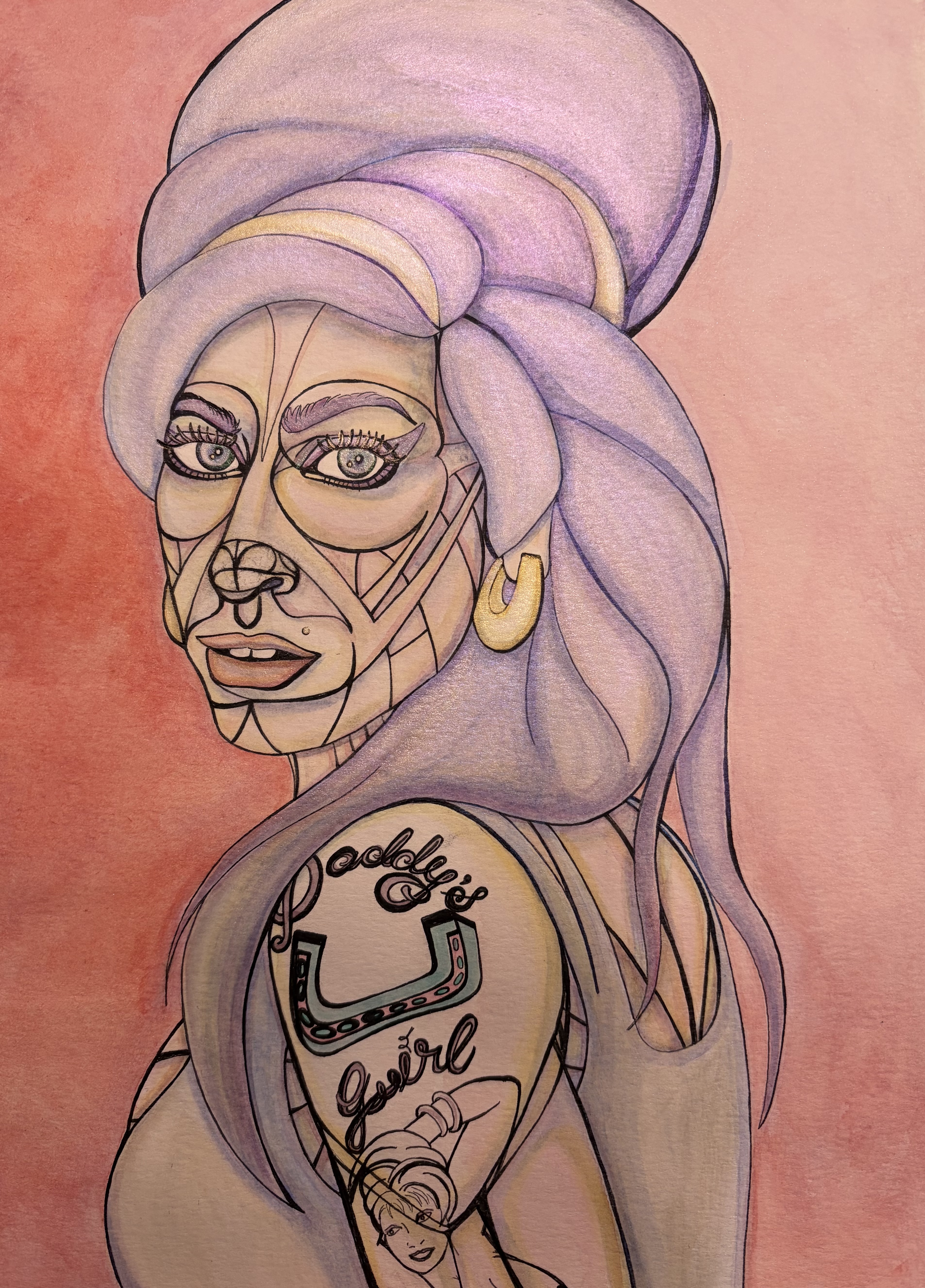 Watercolor, crushed iridescent mineral, and ink on paper